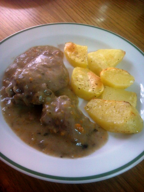 ma ni to, neki se je zamešalo,......... pravzaprav je tudi to, pa ne za kosilo, prej........... pa ste me čist zmešali,............ tole je kosilo danes, skalampajsan krompir: