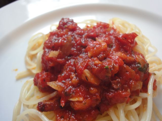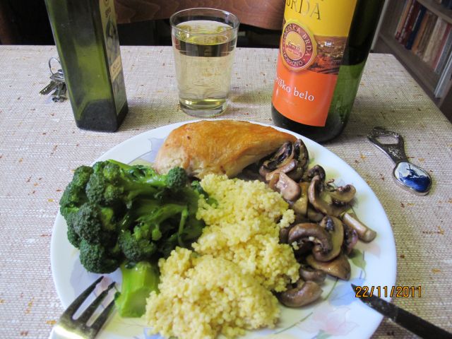 Ko pa sem pisala tole je pritekla voda, torej bo zraven zelena solata in čokoladni puding, ki se kuha.....