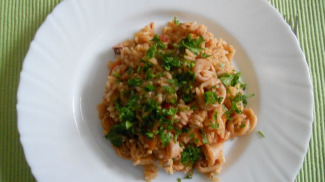 Danes: paradižnikova rižota z lignji, zelena solata, ![]()