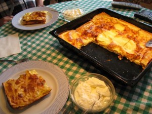 Mi smo danes imeli špagete z mletim mesom na vrhu zapečene s kislo smetano in sirom +radičeva solata! :)