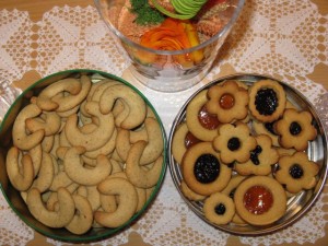 Sobota; matevž, kisla repa, krvavica, lešnikovi rogljički, cimetovi keksi, pa še nova runda domačih rezancov