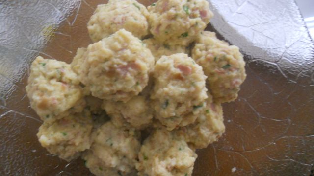 Danes: pozno kosilo z lososovimi polpeti, verjetno pire + zeljna solata s peso, posladek puding.