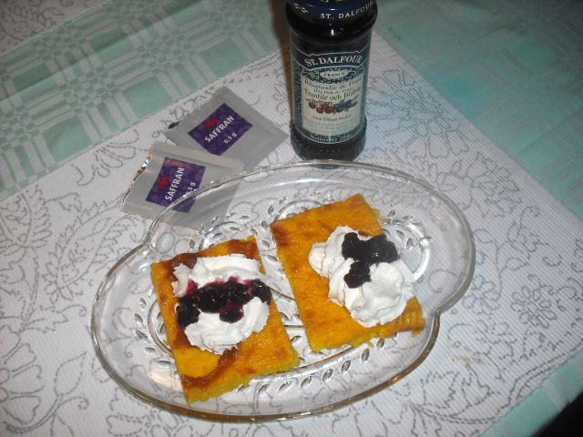 Posladek: rizeva palacinka z zafraniko.