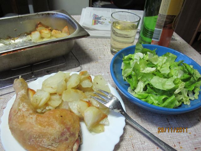 Pri nas pa danes skuše v marinadi, bel kruh in krompirjeva solata.