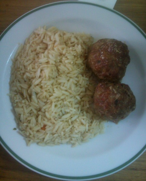 Evo za spremembo slikica včerajšnje rižote z morskimi sadeži, mehka solata z češnjevim paradižnikom, sirom in