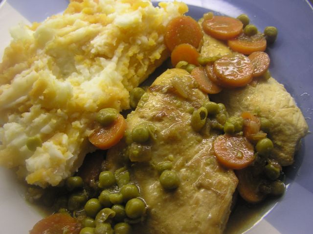 Včeraj: goveja juha z gres knedlni, piščančev file z grahom in korenjem, pire krompir z rumeno kolerabo, radič z zeljem in krompirjem,