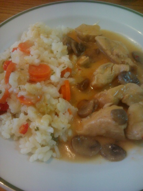 Mi smo pa imeli juho z lečo in riž s piščančjim mesom in gobicami.