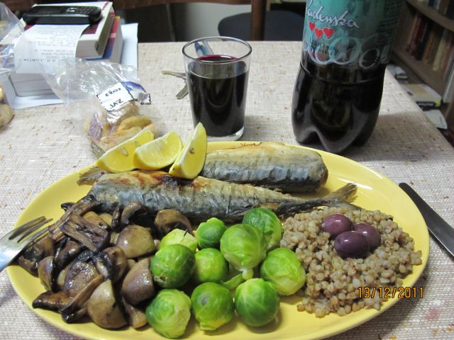 torej, pri meni tudi vegi: gobe, olive, skuše,limona, brstični ohrovt, ajda zalito z vodo s geografskim poreklom ( matr, še kap me bo ).![]()