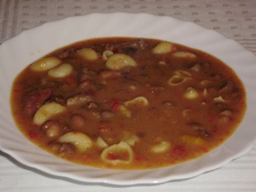 "Pašta fažol" na podlagi včerajšnjega pasulja, kuhani štruklji: