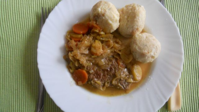 Danes: konjski zrezki z zelenjavno omako, skutni kruhovi cmoki, radič s fižolom