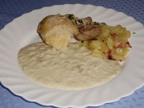 http://www.kulinarika.net/recepti/13503/mesne-jedi/svin, za prilogo eni "sfrtajčkani" makarončki, motovilec z jajci. ![]()