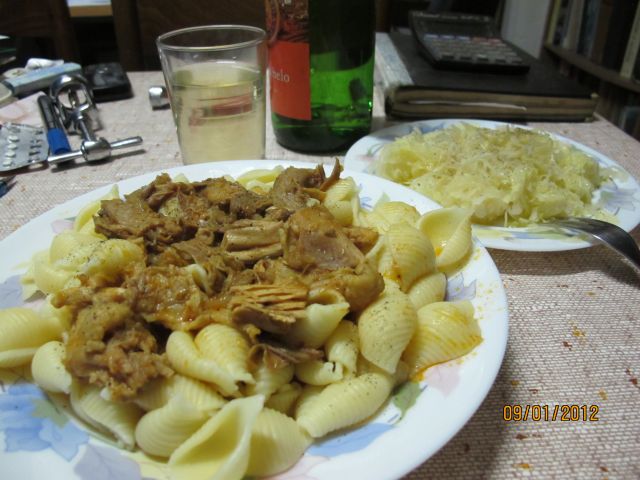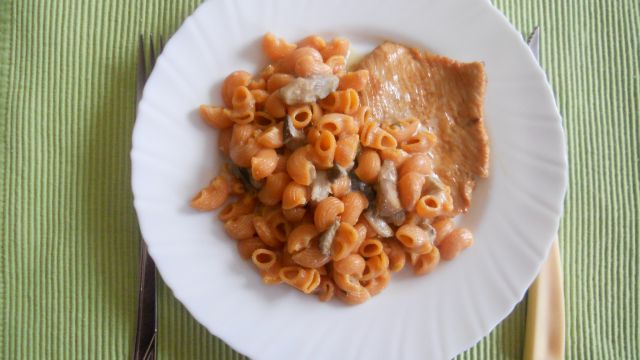 mzmDanes: testenine z gobami v smetanovi omaki, svinski zrezki, radič z jajci