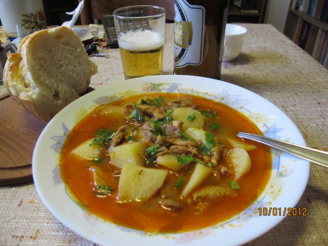 Včeraj: goveja juha, goveji zrezki v omaki, široki rezanci, pesina solata