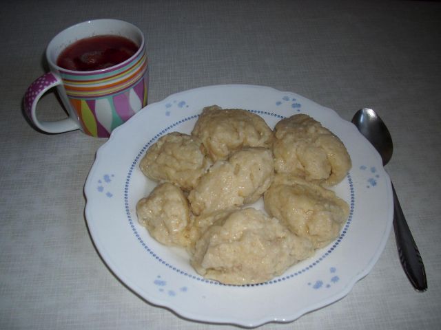 Danes: skutini cmoki (narejeni s pirino moko) in kompot (jabolka, hruške, jagode)