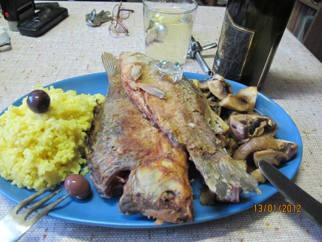 Pri nas danes ocvrti fileji osliča, pire krompir, solata.