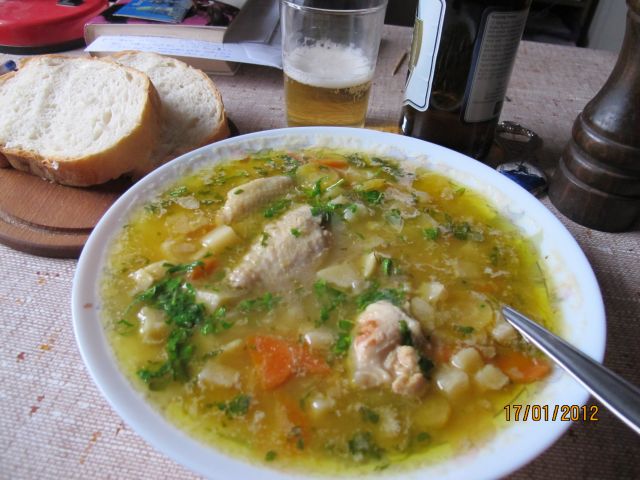 grahova juha s krompirjem in domač kruh ,gibanica