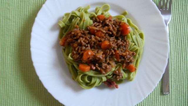 Danes: bolognes omaka, špinačni rezanci, radič z jajci