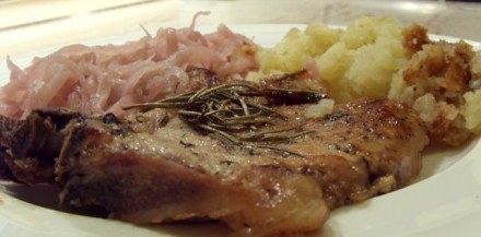 Danes sem ugodila moledovanju, pogoj: skorjica je moja! Zatorej: svinjska kotoleta, kisla repa in kal...samo trenutek...kalampajsan krompir