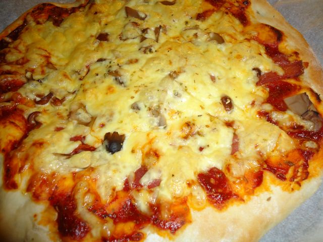 ) domača pica s pršutom in mešanimi (ne norimi