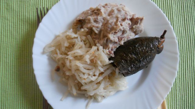 pečenica, kisla repa in domač ajdov kruh![]()