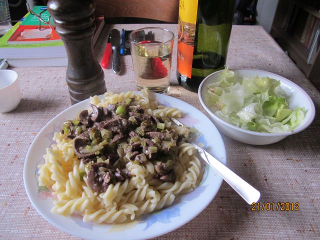 Danes: goveji zrezek na čebuli, mešana zelena solata, orehove palačinke, kapučino.