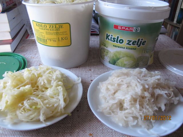 včeraj sem kupil desno pakiranje kislega zelja, recimo pogojno užitno. Po nasvetu rimljanke sem kupil danes levo: zelje tako kot mora bit, aromatično, okusno, pa so en zraven drugega, pa ne velika razlika v ceni.