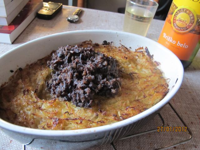 Še niste slišali? Sem presenečen, saj vsak zna naredit tako, celo, lepo zapečeno hrustljavo krvavico, tale cvetoča pa ni kar tako, jaz je delam najmanj enkrat letno, je posebna tehnika. Ah, saj vam povem, saj mi ne boste recept ukradli. Gre pa tako: na maščobi prepražiš mal čebule, ( lahko mal česna, jaz ga spustim ) pol daš gor zelje, mal cimeta........... ma kak cimet ( tega sam za praznike ), mal kumine, mal popra ( no, jaz dam večkrat po mal ), vse skupaj mal prepražiš, pol daš v pekač krvavico, okoli zelje in vse skupaj v pečico na 200 stopinj za eno uro. Mal je treba zalit z vodo, ravno prav, da se krvavica lepo razcveti ( jaz že imam " grif ", zmeraj mi uspe ), in, to je to: dober tek!![]()
