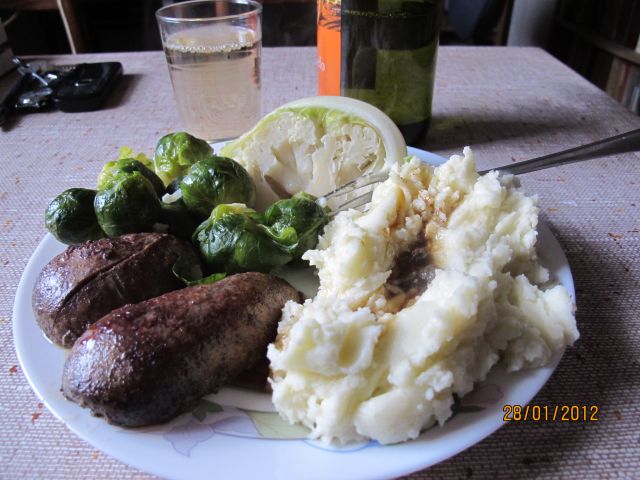 včeraj: popečeni fileji postrvi, solata- kitajsko zelje,krompir, koruza