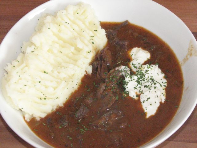 Danes ostanki od včeraj: golaž in sveži ajdovi žganci. pa skleda radiča.