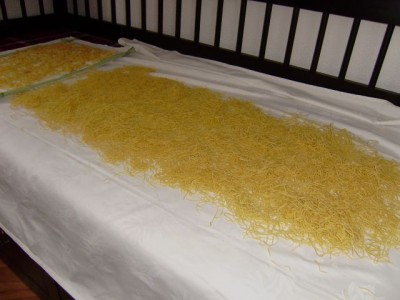 danes porova juha, piščančji zrezki v smetanovi omaki, kodrani rezanci, solata kot včeraj,teranček