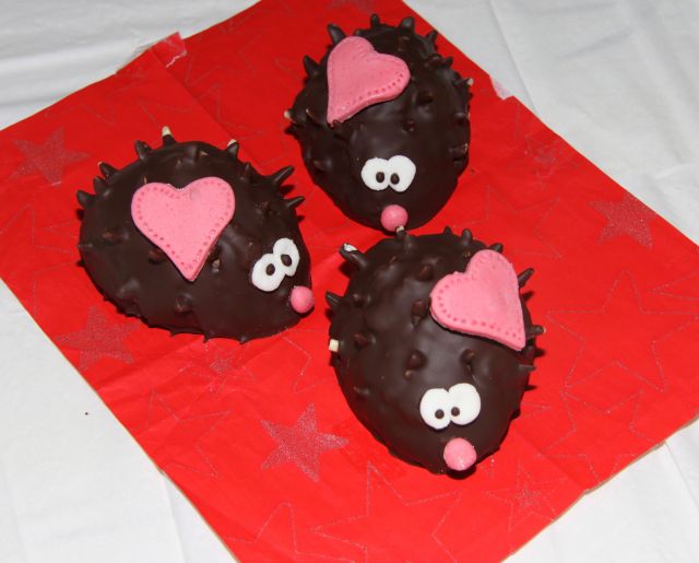 Danes so bili puranji zrezki v jurčkovi omaki in polnozrnat kus-kus ter solata iz radiča in zelja........za posladek pa za mojo močnejšo polovico posebna izdaja ježkov (ker za se za valentinovo ne bova videla)