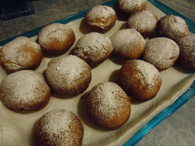 Pri nas danes rižota od včeraj in rdeča pesa, zdaj pa še krofi (niso lepi, so pa dobri