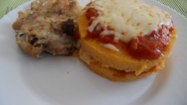 Danes: zapečena polenta s paradižnikom, pečen piščanec, zelena solata