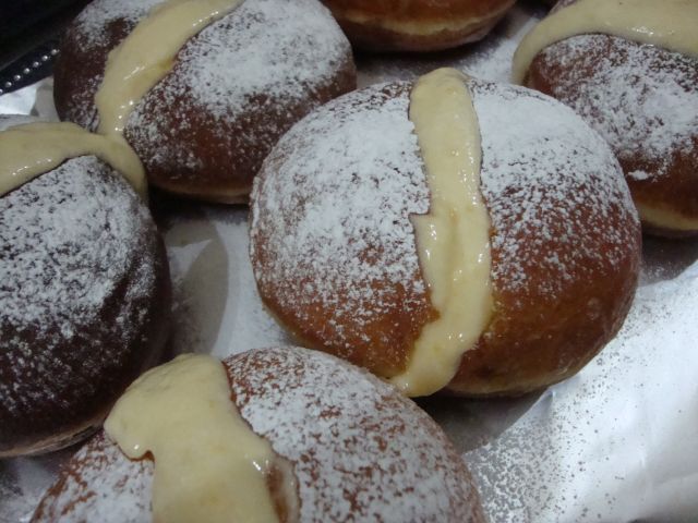 za večerjo(pride sestra z družino): krofi s kremo(prvič delala)