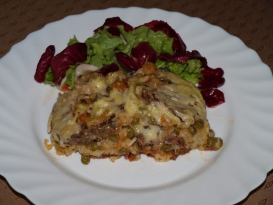 Piščančja juhica z rezanci; reciklaža od včerajšnjega kosila - posuto s sirom, zapečeno v pečici; zelena solata z radičem: