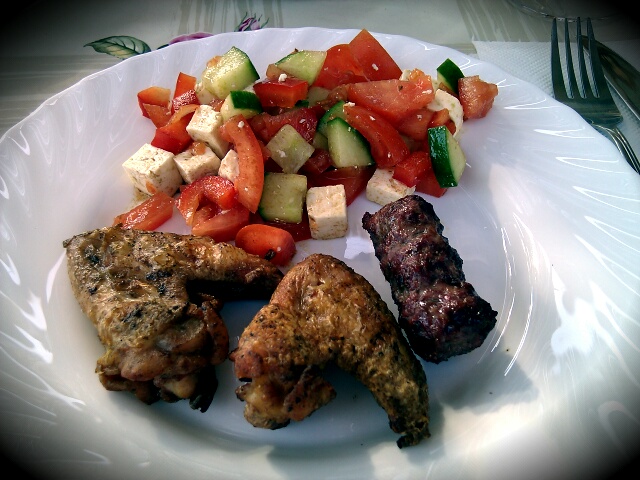 Perutničke, čevapčiči, lepinje, pečena fetka - vse z grila, solata