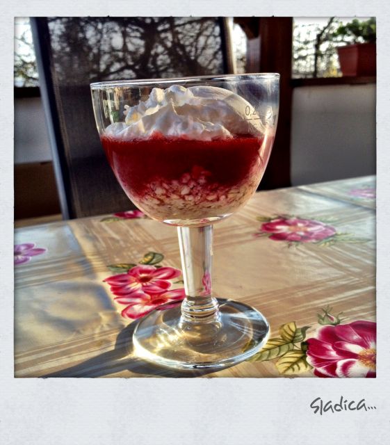 Še sladica: ovseni kosmiči, zmiksane jagode, smetana..mmmm