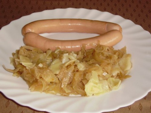 Gosta špinačna juhica s popečenim kruhom; zeljne krpice s hrenovko: