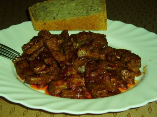 Pražena g. jetrca, domač kruh, zelena solata: