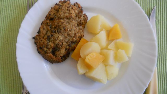 NaturensGalleriVčeraj file postrvi z mandlji, popečena zelenjava v ponvi (brokoli, cvetača, bučka, por, čebula, korenje) z zelišči, mlad krompir v kosih, berivka z regratom.(Sem ga včeraj nabirala po dolgem času in je že zelo velik!!!)