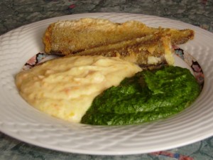Pire - krompir in korenček, špinača, pečni oslič; radič s krompirjem in jajci: