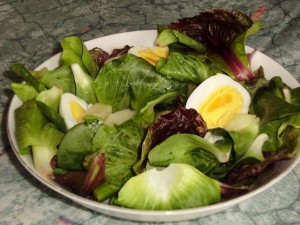 Špageti carbonara in radič s fižolom. Po receptu iz ene revije od mojstra Goljata.