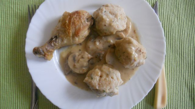 Danes: kruhovi cmoki v gobovi omaki, pečena piščančja bedra, regrad in kitajsko zelje v solati