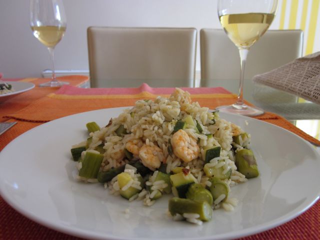 Včeraj: rižotka z bučkami, repki rakcev, šarglji + solata pa je ni na fotki