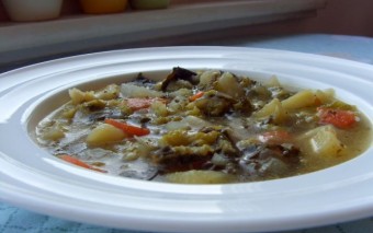 skleda regrata s krompirjem in pecivo