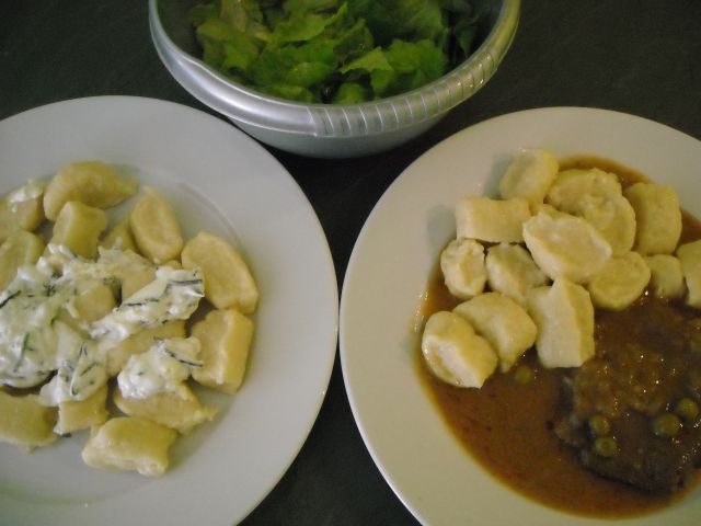danes: skutni njoki-svaljki pa goveji zrezki v zosu ali pa s smetano in nekaj šparglji, berivka