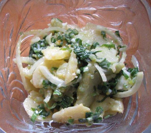 krompirjeva solata s čemažem in čokoladna roladica