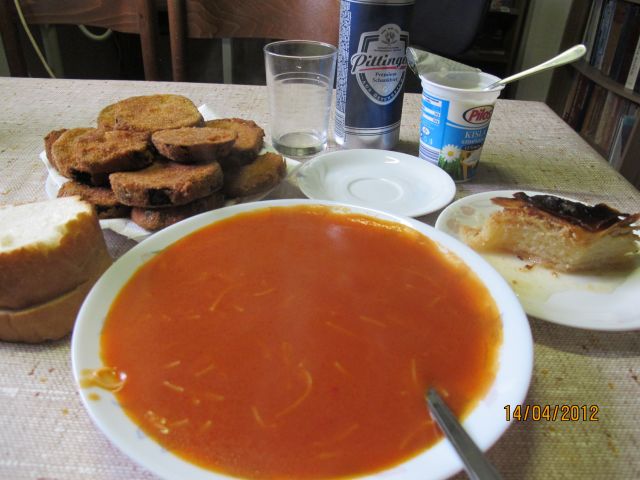 bevaTesteninska solata s papriko, mocarelo in česnom. Za sladico korenčkovo-lešnikova tortica.