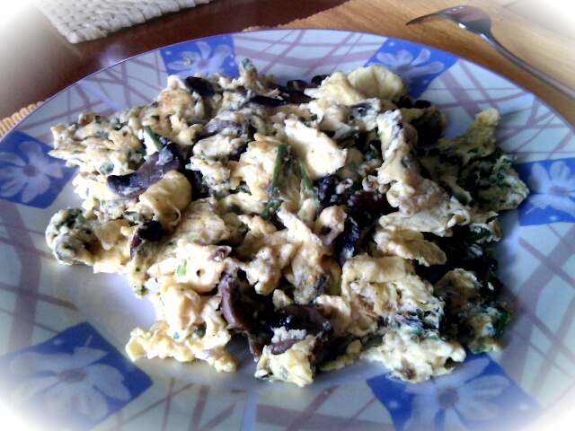 Danes sem scumpral: Zeliščno jajčno omleto, noter pa nafilal šampinjone, čebulo,česen,grah,češnjevce