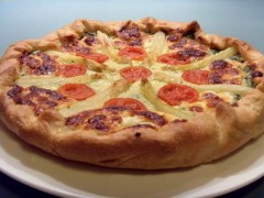mzmSlana torta iz belušev, špinače, albuminske skute in svežega ovčjega sira